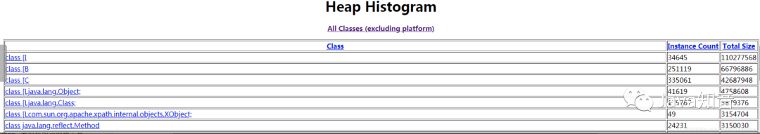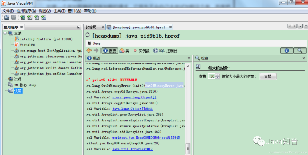 分析内存泄露问题主要使用到Heap Histogram,可以找到内存中总容量最大的对象