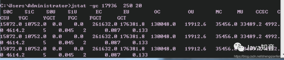 比如:每250毫秒查询一次进程垃圾收集状况,一共查询20次。