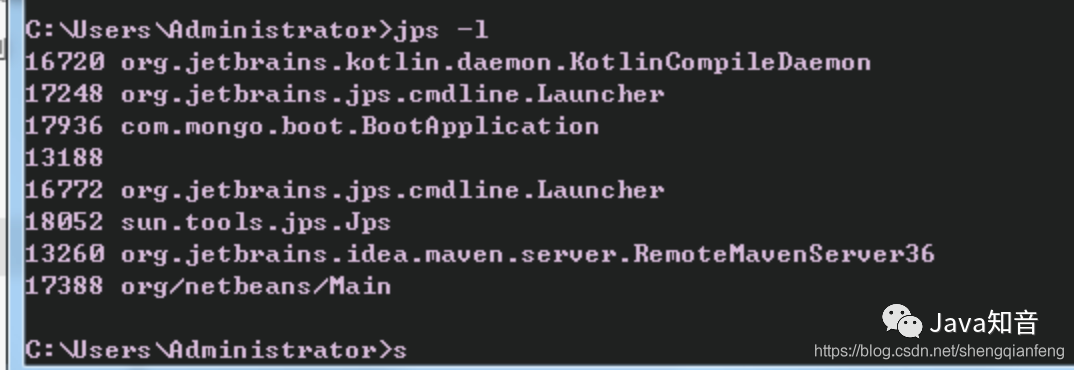 类似于ps命令,输出虚拟机进程信息,第一列为LVMID跟pid是一致的。