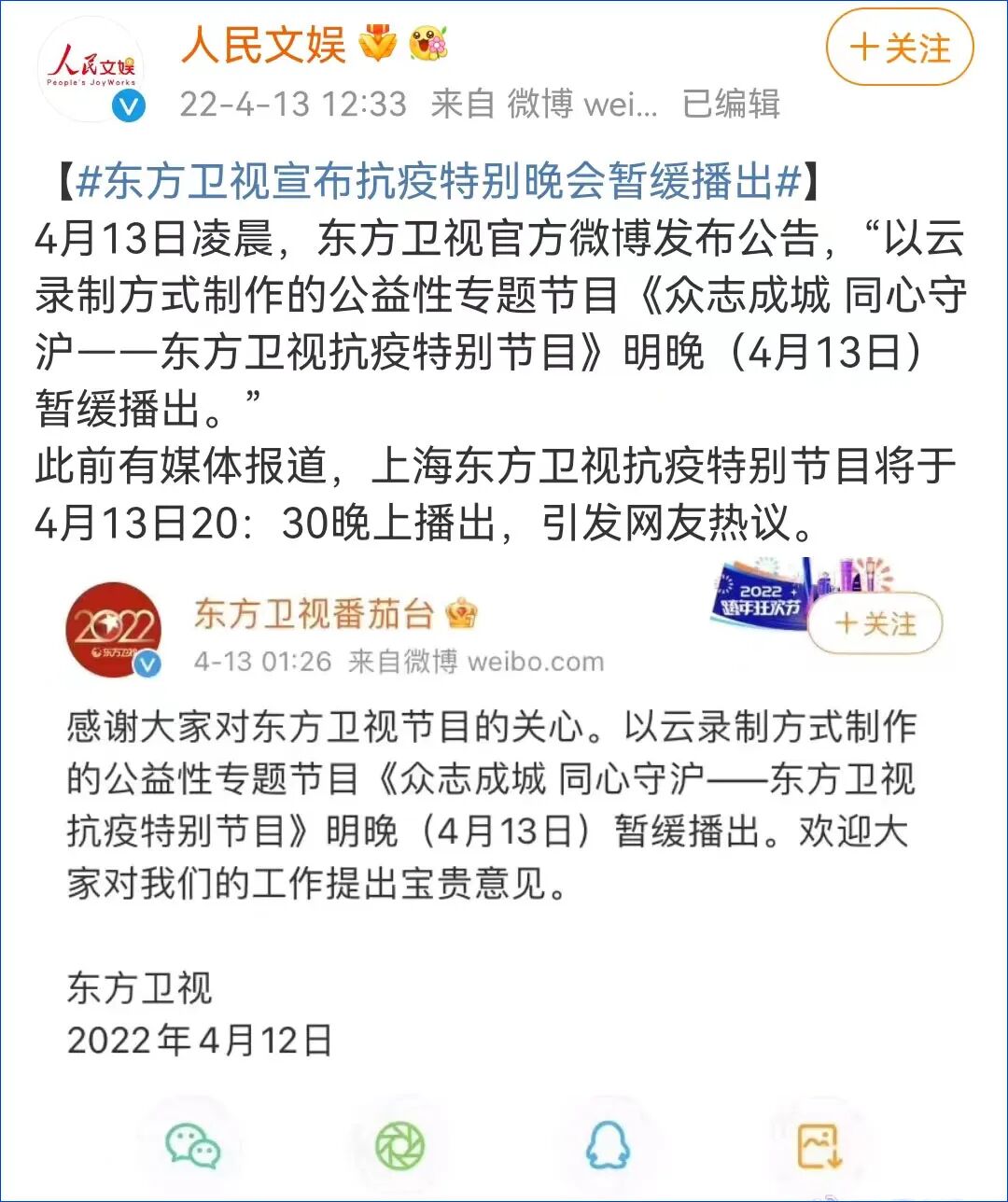 在网友的一片骂声中,东方卫视宣布这场晚会暂缓播出。