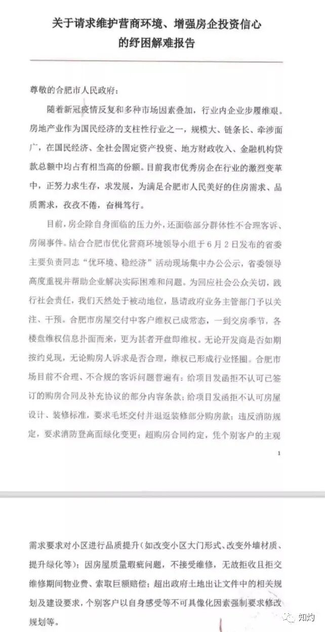 据媒体报道,8月12日,一份名为《关于请求维护营商环境、增强房企投资信心的纾困解难报告》的文件在网络流传。