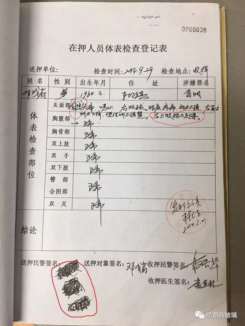 邓成蔚案,三名检察官抹掉了他们留在《在押人员体表检查登记表》的签名。