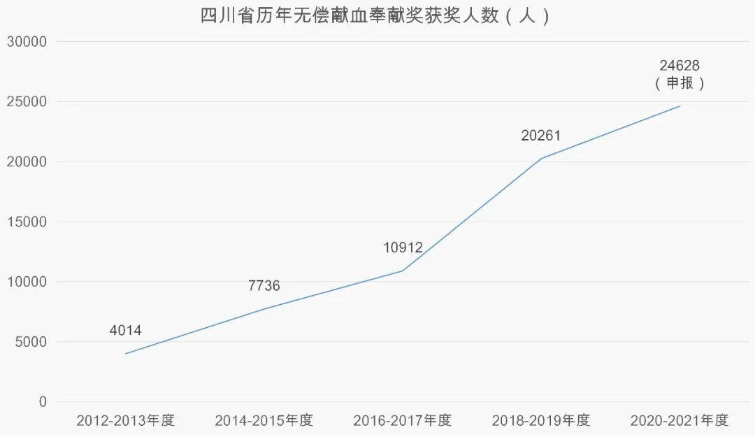 十年来,无偿献血社会影响力和群众参与度不断扩大,每年举行“6·14”世界献血者日和“12·14”四川省公务员献血日等活动,打造无偿献血宣传品牌;2020-2021年度申报“全国无偿献血奉献奖”近2.5万人,是2012-2013年度的6倍多,全省符合“无偿献血先进市”荣誉称号评奖标准的达19个市(州),较2012-2013年度显著增加。