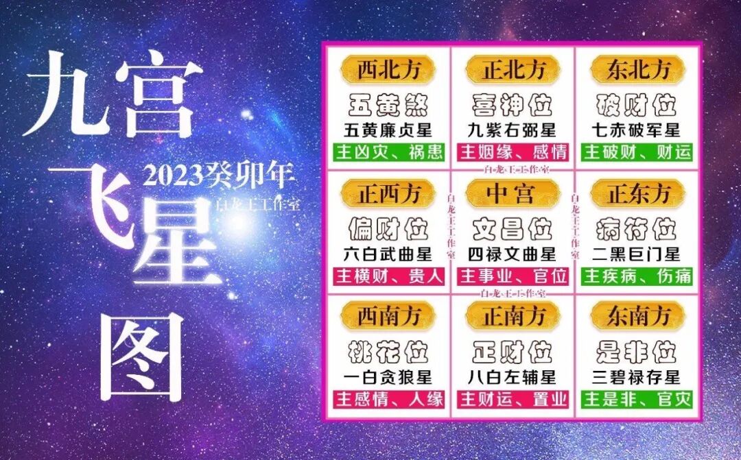 根据风水中三合局与五行冲克理论可知,亥卯未合木局,木旺于东方,西方为其冲,因此进入2023年癸卯兔年,对应东方木,太岁在正东方,与其相冲的三煞方在正西方。
