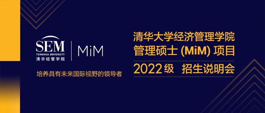 点击“阅读原文”报名清华大学经济管理学院管理硕士 (MiM) 项目2022级招生说明会