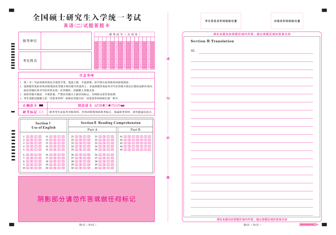 那今天就和学长一起来看看今年的答题卡都长啥样吧~