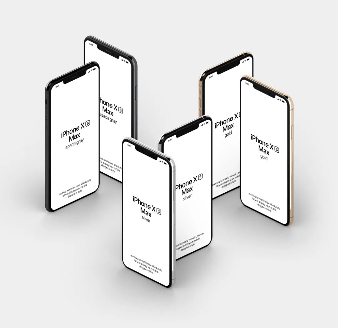 iPhone Xs手机多屏幕平铺演示样机模板