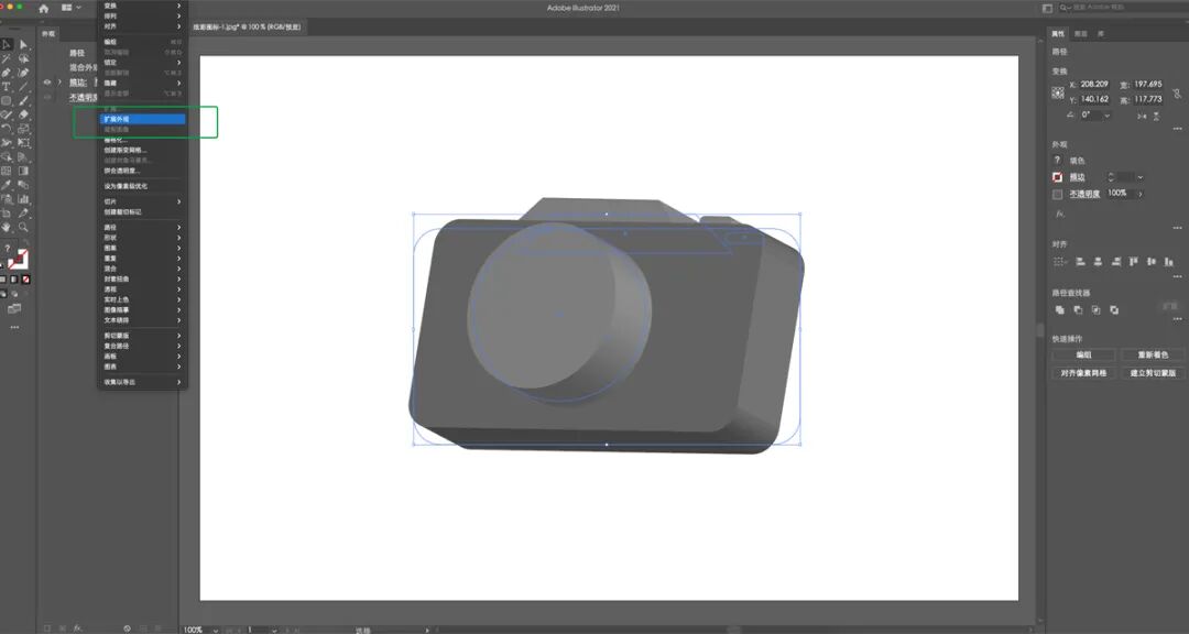 框选所有的色块,并添加3D-凸出的效果,调整凸出距离与透视角度。