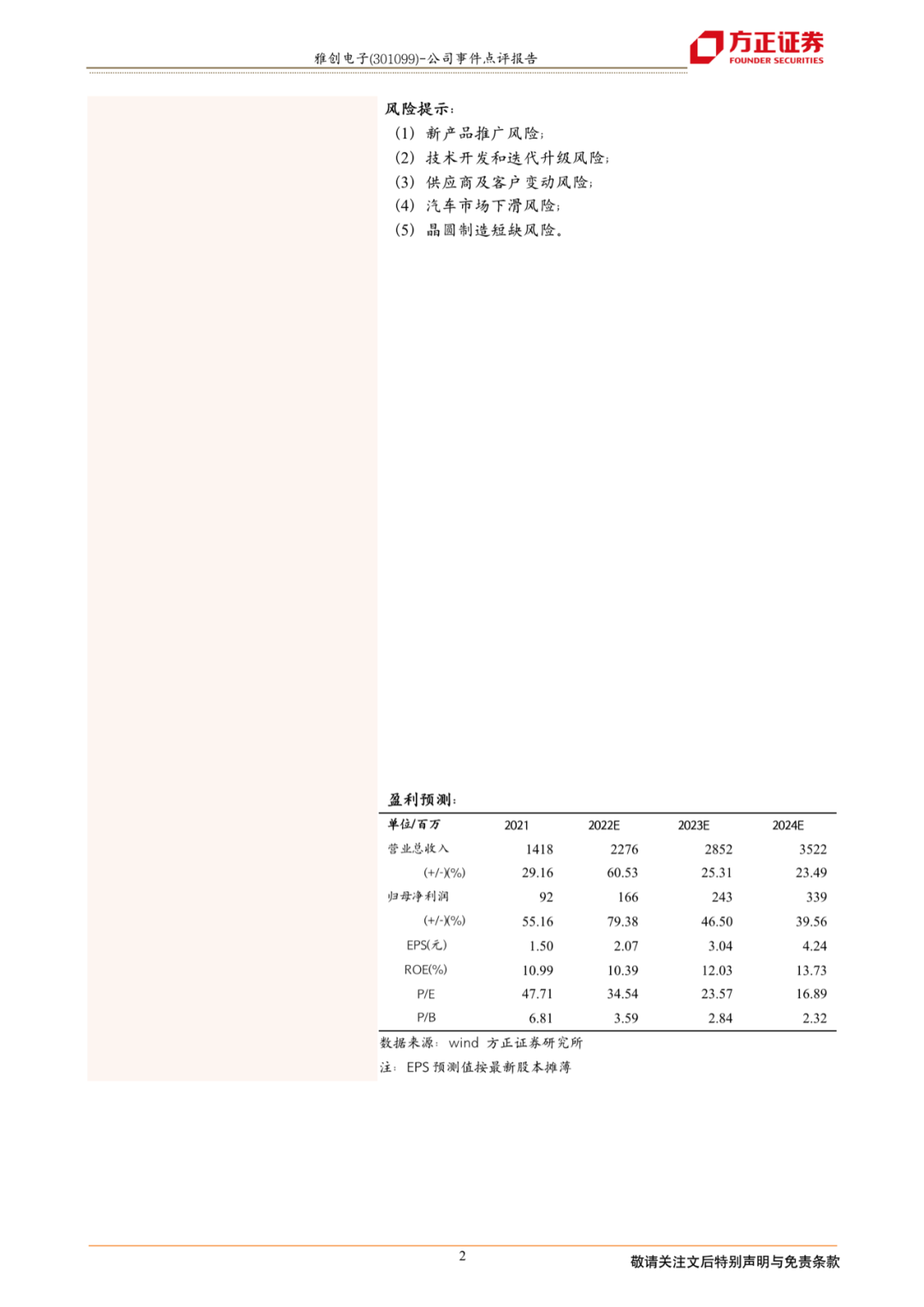 风险提示:(1)新产品推广风险;(2)技术开发和迭代升级风险;(3)供应商及客户变动风险;(4)汽车市场下滑风险;(5)晶圆制造短缺风险。
