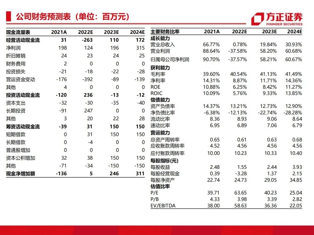 我们预计公司2022-2024年营业收入分别为 14.0/16.7/21.9 亿元;归母净利润分别为 1.2/2.0/3.2 亿元。维持“推荐”评级。