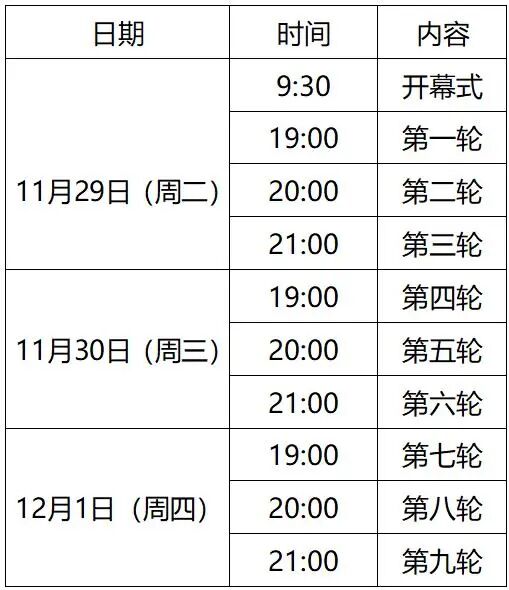 1. 报名时间:从2022年11月18日8:00起开始报名,截至2022年11月24日18:00结束报名,组委会根据报名情况有权提前终止报名。