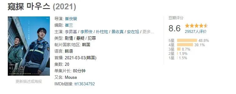 《窥探》选择以19禁开篇,第一集便出现了未成年人引诱杀人、血腥的灭门场景、雪人藏头以及家庭暴力等较大尺度的画面。这无碍该剧首播便创下今年tvN电视台水木档最高收视率。豆瓣上,2.5万人也给出了8.6的评分。