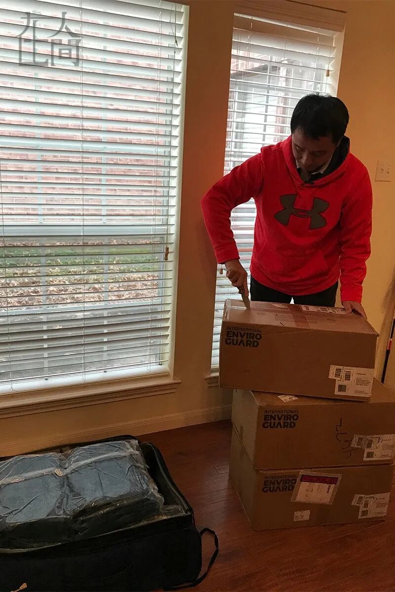 我们公司有一个网站,客户看了会先预约交50%的定金。国内春节前大概不到一个礼拜,就有国内客户跟我说,Marshall我们可能不去了,能不能把定金给我们退回来?他们说是因为新冠肺炎。我赶紧把钱给他退了。后来美国政府宣布隔离从中国回来的人,停止给中国人办美国签证。我想,那3月份要来的人,也赶紧给退了吧。等时间过了,再做生意。因为我会中文,一般中国顾客都是我接,打猎之前,我们要对顾客进行枪械训练,为了他们的安全,也为了我们工作人员的安全。现在他们不来,我就闲着没事儿了。我想,反正有时间,就看看国内需要什么。我认识不少美国华人,有聊天认识的,在教堂认识的,也有一起打羽毛球的。我跟他们说了想法,有人觉得OK,也参与进来。我们组织了一个几十人的群。这样就搞起来了。大部分人觉得我有时间,就说,我们把钱都给你,我说国内不缺钱,给钱也不可能战胜病毒。他要的是东西,咱们给他找这东西去。正好我以前投资过抗衰老中心,算是医疗诊所。我就问以前的供应商,谁有口罩卖。一问,基本没货,或者有货也不能全卖你。因为美国人自己也得留着,以防需要。突然感觉这东西挺紧张的。我一个人找口罩也费劲,就在群里发了医疗批发方面的公司网站和电话号码,大家一起联系,有时间就跑一下。一开始大家都挺热情,都打电话找,但一般打几个电话就气馁了,感觉没戏,就不弄了。最后就剩我们夫妻俩弄。抢购这事儿真不可思议。当时中国留学生都在找货。从20号左右开始,基本一个星期全扫光了。国内在过春节,这边还在扫货。零售商店、普通超市和药店很难买到医用口罩,因为平时卖不出去。医院里也没有卖口罩的,医用口罩得找给医院做批发的渠道商。要找大批量的,医疗界的渠道商和批发商是我们的主要目标。但那时候不能相信网页,下单后要打电话确认。你们真能给我运过来吗?真有那么多吗?99%的可能性是NO,我们没有,但是我们网页没有更新,对不起,卖完了。或者说1万个可以有,但是6个月以后。美国历史上就没有过这样抢口罩的事儿。美国人没有戴口罩的习惯,我这么多年一个也没看见过。当时美国查出几例新冠肺炎患者,但没有恐慌,美国CDC说,我们每年死于普通流感的人就六七千人。没有人去买口罩防护,该看橄榄球决赛的就去看。很多机构找我帮忙采购口罩。我当时联系到一批口罩。有一个国内公司给政府采购,说,我们给你10%的定金,等货到了再给你90%。我说这是卖方市场,你得全款打过来。后来晚了,那边说没了。我的客户很多都是老板,也想捐献物资,让我帮忙买。有一次,我在网上买了6箱防护服,却只收到一箱。对方说全美4个州都有我们的公司,你买的防护服从不同州运过来,你得等。最后收到4箱。那边说对不起,另外两箱已经卖给别人了,钱给你退回去吧。防护服比口罩还要难找。当年埃博拉病毒,也需要用非常高级的防护服。这个防护服的制造公司就在我们达拉斯。我就问他们,埃博拉那个(防护服)还有吗?他说有。我说这个能防新冠病毒吗?他说没有任何问题。我说你再查一查?他说行,明天我跟你说。第二天我又打了一个电话。他说右眼眼膜受伤了,得去医院,回来要下午3点多。我说那你先把眼睛看好,出来之后给我打一个电话,那300箱我全买了。但三个小时后,等他回来300箱全没了。价格也在涨。3M口罩在美国平时是七八十美分一个,贵点的2块多美元一个。疫情期间,大概每个3美元、4美元。一线使用的防护服价格从10美金左右涨到了15美金,2月5日开始,又涨到了45美金一件。第一个礼拜抢购的时候,美国人还没琢磨过味来,网页都没来得及更新。但不到一个星期,亚马逊上口罩的价钱,立刻从10来块钱一包涨到100块钱。一开始,“打老虎群”里的企业家捐赠了一批费用,我们负责采购、运输、通关、做材料、对接医院等所有事宜。通过联系渠道商,好不容易在网上定到了一些货,就等他们运过来。一般来说,货寄到我手上要3到8个工作日。彼时,我们在网上看到随州市中心医院的求助消息,物资告急,医院就剩两三件防护服了。武汉集中了很多物资,但是发不到湖北这些小城市,看了让人掉眼泪。刚好有个朋友的弟弟在那家医院当医生,确认信息真实之后,我们就准备了11箱物资。1月26、27日,第一批货到了我们手上。刚好此时,达拉斯有家快递公司发出了免费运送捐赠物资到前线的信息。■ Marshall做志愿者搬运货物。