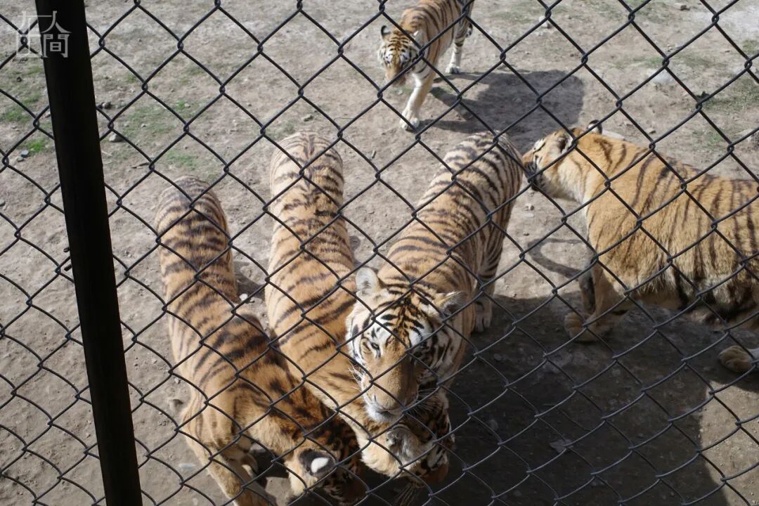 当你走近投食口,老虎们兴奋地围拢过来。工作人员说:“并不是老虎饿了,而是它们喜欢和人玩。”它们已对人产生亲近感。公开数据显示,繁育基地用了二十多年,从8只东北虎开始,数量突破了千只。2016年,中国境内的人工繁育虎数量超过6000头,其中近半数是东北虎,但尚无一例野放成功。“中国猫科动物保护联盟”(猫盟CFCA)创始人宋大昭不太理解,虎林园在今天繁育东北虎的意义。野外又不是没有东北虎,它们还在增多,野化本身没必要。“所谓的野化训练,一个最基本的原则是老虎从小到大不能看到人,要怕人。”如何让野外的老虎种群扩大才是问题。根据2019年虎豹跨境保护国际研讨会的数据显示,中国境内的野生东北虎只有27只左右。老虎复杂的斑纹在丛林中是神隐的工具,但到了虎林园,便显得格外突兀。这里不是它们自然的家园。适龄的母虎,有些会成为种虎,转到繁育基地里。所谓的种虎,即能带孩子、喂孩子的母老虎。种虎们一直住在繁育中心,部分母老虎生完了幼崽后,重新回到观虎长廊。种虎很少,一般要经过三到五年的历练,下个三到五窝崽,才可能培养成才。“很多母老虎,下完了崽儿就不管了,得靠人工去喂。”在繁育基地的老虎,全呆在虎舍里,外带一个能见到阳光的后院大小的活动空间。有所区别的是,“好老虎”能陪伴幼崽一段时间。但人工喂养的幼虎,不仅无法和母亲一道生活,过去还可能被游客参观、抚摸、抱着一起拍照。这些年由于游客投诉,相关活动已被取缔。没有被繁育基地选中的老虎,有些会送往“动物园”区域,隔着笼子展示给游客。每年产仔五六十只,虎林园也为不断变多的老虎发愁。饲养员说:“最近又下了两窝虎。以前,我们都往哈尔滨的虎林园送,但这几年他们老虎多得也放不下了。”有生便有死。按照虎林园的说法,死去的老虎将被冷冻处理,做好标记。但打开游客导览图,交通介绍中提到“东北虎酒业相邻,间距不足1公里。”走进店内,酒就摆在柜台里,包装上印着老虎像,写着“森林兽王,经典佳酿;每500毫升,1280元。”如果买一箱,里面有六瓶,可以5900元拿走。“过去游客能直接进酒厂,看到完整的虎骨泡在大玻璃缸内。现在不会说是虎骨酒,只说是壮骨酒。”陈栋还说,找他买酒绝对放心,“这里买不到真的,哪里还能买到呢?”来买酒的,大多是熟人以及相信酒是真货的客人,陈栋无法提供虎骨酒制作的证据。直到今天,不少人还是迷信野生动物入药带来的效果与安慰,哪怕他们能找到更科学的治疗方式,也明知虎骨酒是违法的,但还是会购买。在老虎伤人新闻出来后,白鱼湾镇的人差不多都知道了“赶虎者”是谁。那天早上,宋喜国听到老虎的消息后,从镇上开车去了十公里外的临湖村。早上九点半,他发了条朋友圈,“白鱼湾,新发五队,出现老虎。”十多分钟后,他拍到了老虎的背部,“好像是母的”(后证实是雄虎)。白鱼湾镇共有1.7万人,过去叫白袍子乡,下辖9个行政村。在此之前,村民从没听说过村里有老虎,“这是个新鲜事。”李玉说。他是乡上消息最灵通的十多位黑车司机之一。早上十点多,在人与车的嘈杂声中,完达山一号向北跑去。它走的速度不快,一小时走了三公里,抵达临湖一组。正在田地干活的李春香被扑倒。直到回家,她才发现自己受了伤,身上有血。宋喜国是最早预判到老虎要扑人的司机。在冲向田埂时,他录下了视频,“老虎扑人了,老虎扑人了。”两分钟后,他发了条朋友圈,“老虎已经过沟子了,奔二队方向,奔二队方向。”当天早上六点多,张守志就报了警。老虎出现在自家前院约一米的围栏外,正前方是村民们日常通行的乡道。他进屋叮嘱妻子不要出门,又到村上告诉其他的村民,有只趴在道上的老虎。“老虎很仁义,后院养了十几只鹅,它一个也没祸害。”张守志的妻子谈起老虎时,语气很欢乐,像是款待了从远方来的稀客,“老虎就是想来歇息下。”围观人群越聚越多,最多时有20多人。报警后,八点边防派出所的人来了。村民说,没人相信这里有老虎出没,派出所一开始也不信。早上八点多,张守志和妻子送完孙女回到家,不让进村。“村外拦了好多人,密山市都跑来人想看老虎。”安静地呆了三个小时后,老虎被汽车发动声音惊动,向北跑去。从镇上、市内赶来的车辆抓住了机会,一路跟着老虎,拍照录像,发布在短视频平台上。随着媒体的加入,共有几百万网友目睹了直播抓老虎。直到下午六点,专业人员和麻醉枪抵达现场。身中四枪后,这只野生老虎被控制住。围观告一段落。“事情一步步走到了完全不可控的状态。”宋大昭谈到这起事件,认为最大的漏洞是没有做好疏散和控场。“这种情况下一定是疏散人,完全不能让人靠近了,而且要通知村民对吧?”如果不是老虎伤人的新闻,密山并不为人知。这是个发展缓慢的边境小城,与俄罗斯隔着兴凯湖,过去是北大荒开垦区域的一部分。它位于黑龙江东南部,每天有两趟去往省会哈尔滨的火车,要近十一个小时。十年前,密山市西北部相隔27公里的富源乡水库附近,曾发现一具成年野生东北虎的尸体,其颈部有钢丝套,倒在青年水库边。村中的刘义松是当时第一个目击老虎尸体的人。他的地就在水库边,从村子里要走三十多分钟。出租车司机也目睹了那只死去的东北虎。最初只有几个人围观,陆续来了上百个人围观。“老虎个头很大,老百姓帮忙,七八个人才