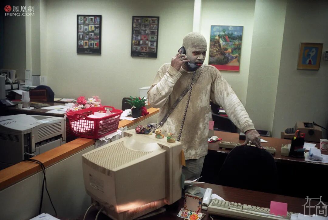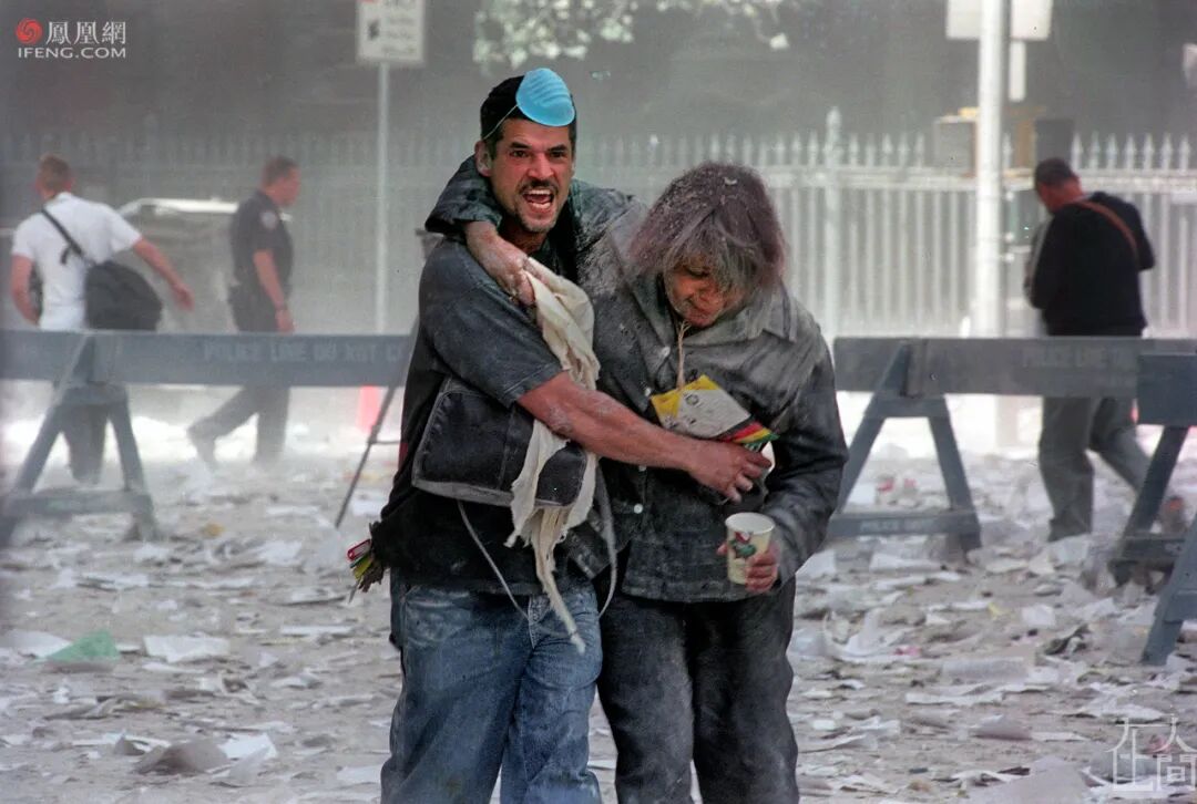 在我刚拍完一卷胶片,正低头给相机装卷时,周围的人们开始尖叫,南塔爆炸了,一团巨大的火焰腾空而起,冒出滚滚浓烟。大楼像是要砸向我们,我和几个警官、消防员一起跑进了一栋办公楼的地下室。在接下来无比漫长的几分钟里,我们试图寻找大楼内的出口,希望能通过出口进入另一条街道——任何一个离南塔楼稍远一点的地方。