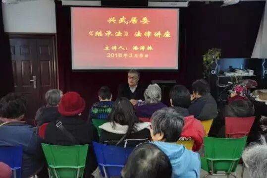 居委工作人员对专业法律知识不甚专业,对居民提出的专业法律问题无法系统全面地回答,为了让法律知识渗透到居民和居委工作人员的日常生活中,在大调研期间,兴武居委签约法律顾问潘涛林(上海市沪一律师事务所律师)来到兴武居民区为居民解答相关法律问题。
