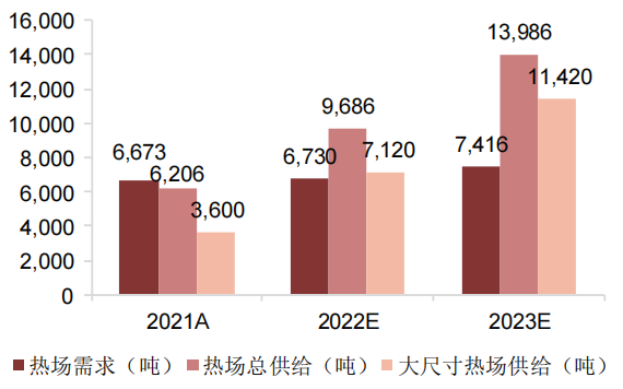 2022 年碳/碳热场供需逐渐宽松,将转向成本、产品差异化竞争。