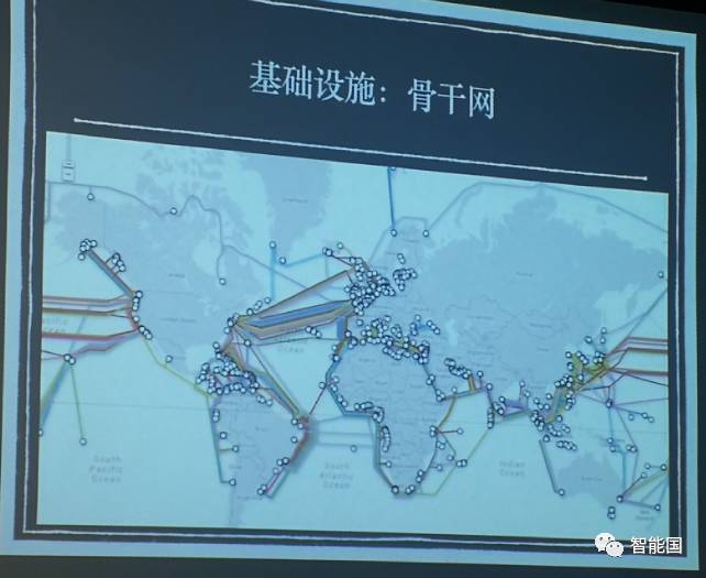 今天的互联网硬件,中国正在逐步追赶美国。在沈逸老师给出的图片上,互联网的骨干,网海底光缆铺设商,有4家美国企业,1家中国企业。