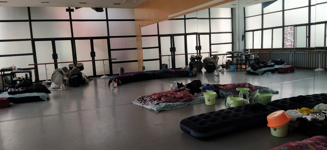 我的一个上海粉丝告诉我自己是阳性,被拉到中转点已经第4天了,还没有方舱可以接收他。中转点只有气垫和睡袋,是在一个少年宫里。不过还有架子鼓,不知道是不是能带来一点乐趣.