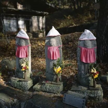 大家可以想一想地藏菩萨的样子,红色头巾和围嘴,不就和小孩子的服装一模一样吗。而且日语里红色也代表孩子。「赤ちゃん」、「赤ん坊」等词都表示小婴儿。此外,现在对地藏的红色还有着各种各样的解释:红色代表着太阳、生命的起源,甚至是还有说法是为了让迷路的孩子能平安走向黄泉而标上红色的记号。