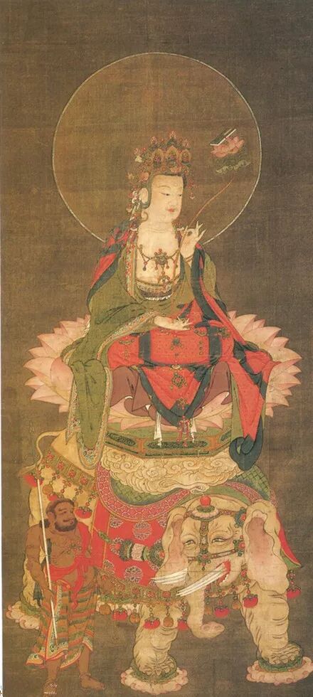 普贤菩萨 ,音译为三曼多跋陀罗,遍吉菩萨,佛教四大菩萨之一。头戴五佛冠身金色,右手持剑,左手结施愿印,半跏趺坐于六牙白象之上。