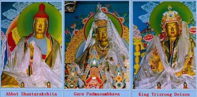 师君三尊(由左至右):静命论师、莲师、赤松德赞