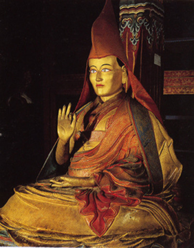 第一世达赖喇嘛根敦珠巴,1391年生于后藏霞堆地方,1474年圆寂于日喀则扎什伦布寺。