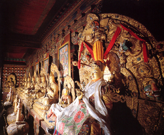 铜质镀金九尊无量寿佛像,为无量寿佛殿主要所依。1783年由策墨林.阿旺楚臣建造。