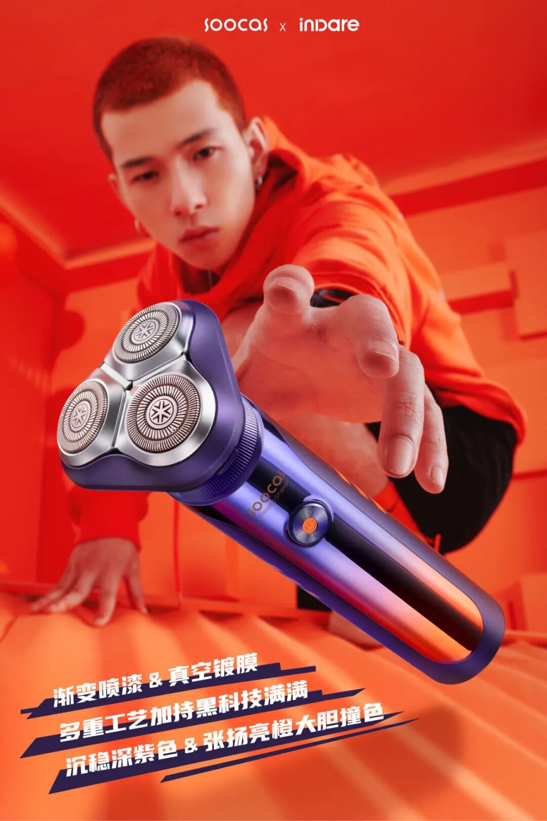 【素士超能自动剃S31】大胆采用紫橙撞色