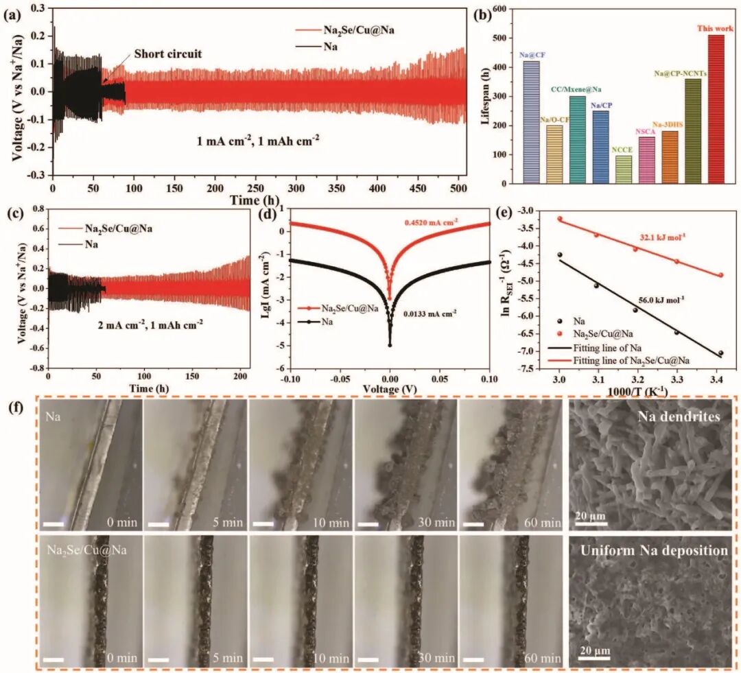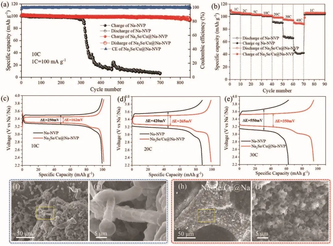 深圳大学何传新、中科大余彦等通过将熔融的Na注入由硒化铜纳米片修饰的多孔铜框架中,获得了功能性复合Na负极(Na2Se/Cu@Na)。