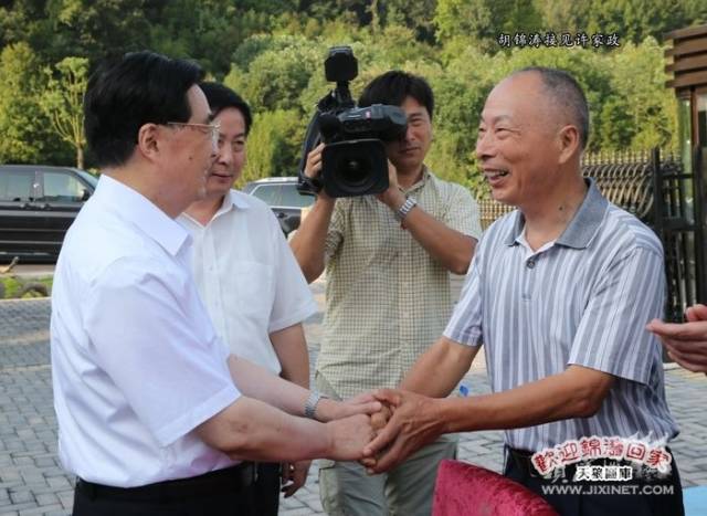 1990年4月,绩溪出席全国人大会议代表许家政去北京时,胡寿民老先生托他带给胡锦涛同志一封信,意在介绍家乡的情况,介绍家乡人见见面。许家政从未与胡锦涛见过面,又不知他的住址,就把信托大会秘书处转交,并在信上告知自己的住址和电话。不久,许家政接到了胡锦涛亲自打来的电话,约定见面。为了方便和节约时间,胡锦涛提出了这样的见面方法:他问许家政的座位排号,请他在会前半小时入场,在自己的座位上等候。许家政非常高兴,按时进入了自己的座位,胡锦涛也按时到达了这里。同乡人相见,胡锦涛是那样热情、亲切、平易近人,他询问和了解家乡各方面的情况,一直谈到开会铃响,许家政请他去主席台就座,他还是舍不得离去。到第二遍铃响,许家政很着急,怕影响他工作,再次请他去就位,他才与许家政道别。临别前又与许家政合影留念。至今,这幅珍贵的照片仍保存在许家政家中。