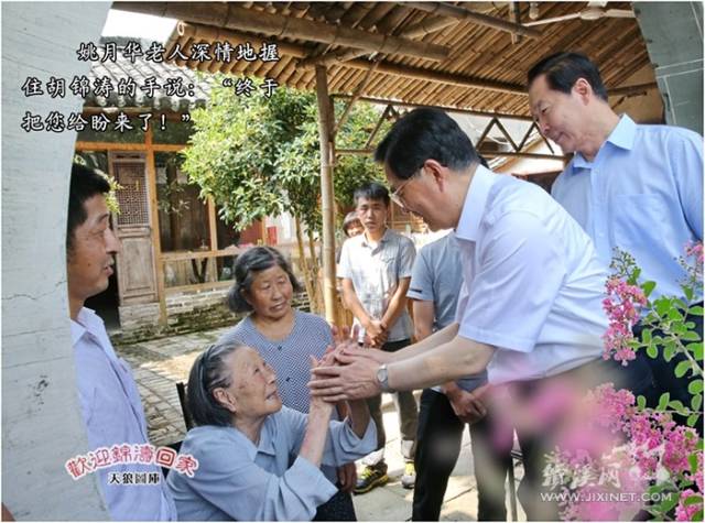 2013年9月13日 胡锦涛紧紧握住绩溪老乡姚月华老人的手