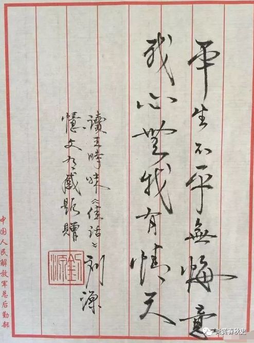 我写完这篇回忆文章后,刘源读后很感动,特意写下这幅字帖送给我。