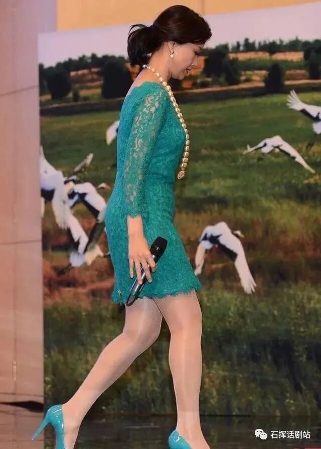 孔雀绿色上身之后把宋祖英的肤色显得特别显白,照片中的宋祖英穿着这条紧身的蕾丝连衣长裙,连衣裙上的蕾丝面料包裹着宋祖英的好身材,把她的身材显得更加凹凸有致,脚上搭配了一双和连衣裙颜色一致的高跟鞋,颜色相互呼应的刚刚好。