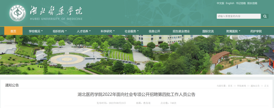 因疫情防控需要,考核具体时间、地点、要求将在湖北医药学院人事处网站公布,请应聘人员予以关注。