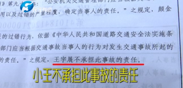 2月23日,当事人小王拿到了交警部门出具的责任认定书,交警部门认为,小王不承担此次事故责任。