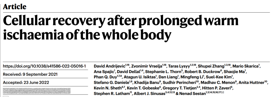 [2] Cellular recovery after prolonged warm ischaemia of the whole body. Nature (2022). DOI: https://doi.org/10.1038/s41586-022-05016-1