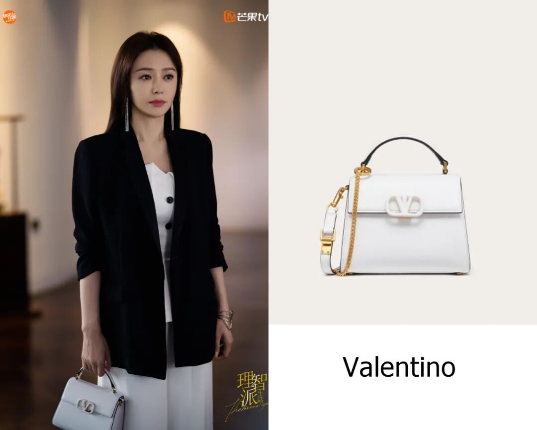 和上司出席活动,她两次都选择了 Valentino。白色的 Vsling 好看又好搭(就是不耐脏),无论是通勤还是正式场合都能 hold 住。官网价格:16200元。