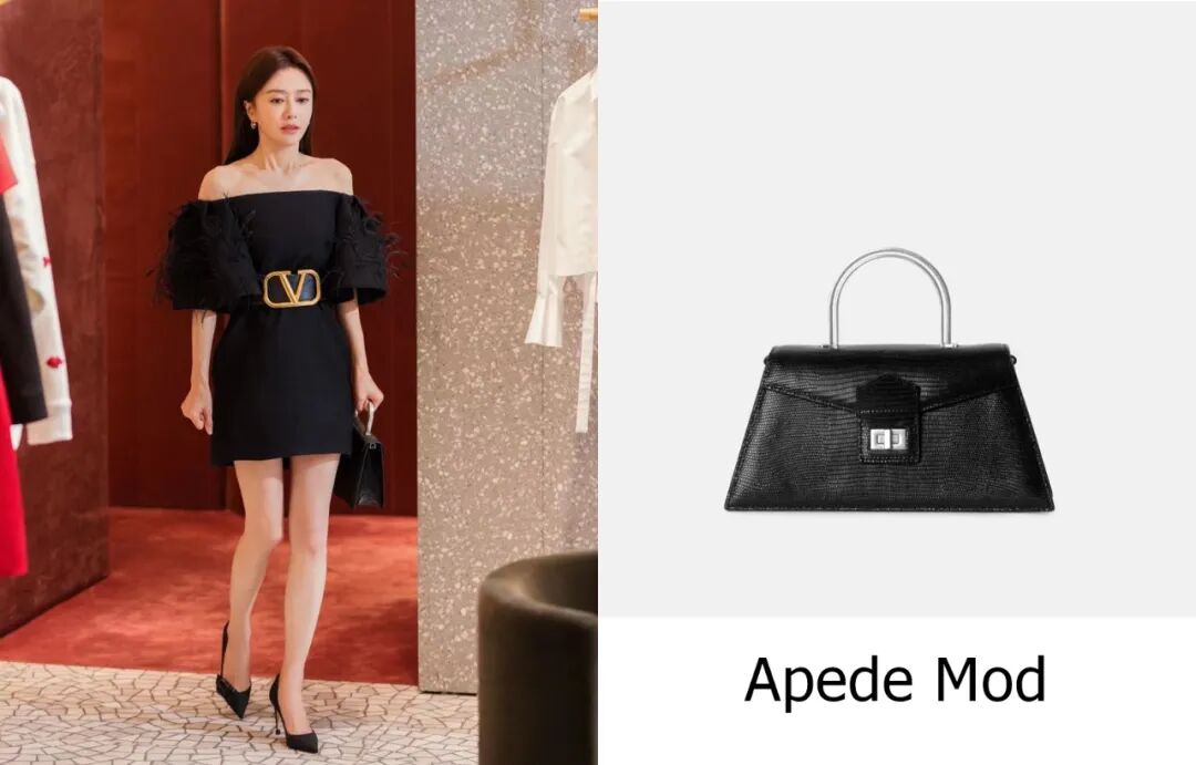 她还背过 Apede Mod 的另一款 Le Book 信封包,集齐了黑白两色,是他家的热门包款之一。金属手柄+鳄鱼压纹皮革,适合精致的都市丽人!官网价格:2699元。