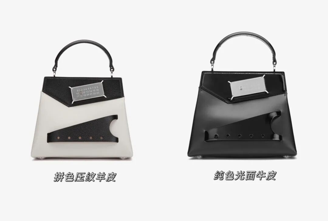 包包的精髓是正面不规则的手握槽,手可以插进去变成一只手拿包。这个设计还是挺别具一格的。