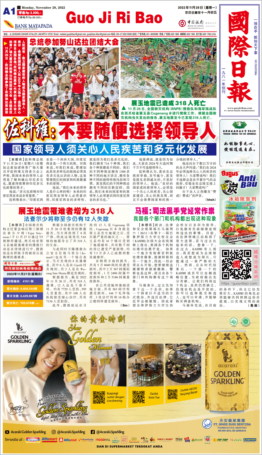 【本报讯】11月26日印尼驻华大使周浩黎(Djauhari Oratmangun) 二公子Resiyaman Patrick Oratmangun先生和Maria Harumi Indrayani小姐在雅加达南部Tangerang区Santo Nikodemus Paroki Ciputat天主教堂喜结良缘。