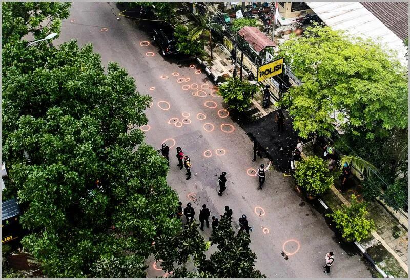 【本报讯】周三(7/ 12),西爪哇省万隆市阿斯塔纳·安雅(Astana Anyar)警察局发生自杀式爆炸事件。万隆市警署长阿斯温上 校(Aswin Sipayung)声称,当天上午8时20分,阿斯塔纳安雅警局的警员们正在进行早晨集会。突然,一名男子挥舞着锋利的武器闯进阿斯塔纳安雅警局的前院,并冲入集会群里,警员们立即躲开。然后发生了爆炸,肇事者和一名警员顿时死在现场,另有8名警员和1名平民受伤。