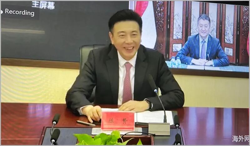 陆慷大使与陈贽总编辑、熊德龙董事长在线出席见证