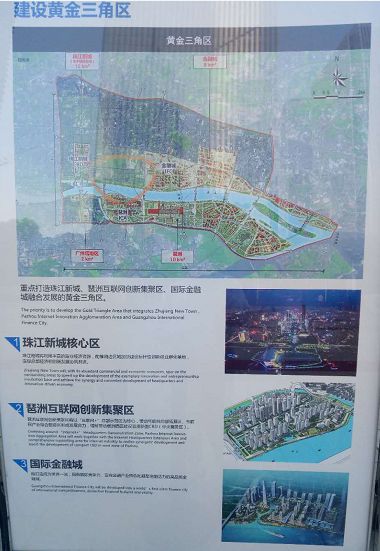 先给大家看一张我在广州花城广场拍的图片——广州城市规划:建设黄金三角区。