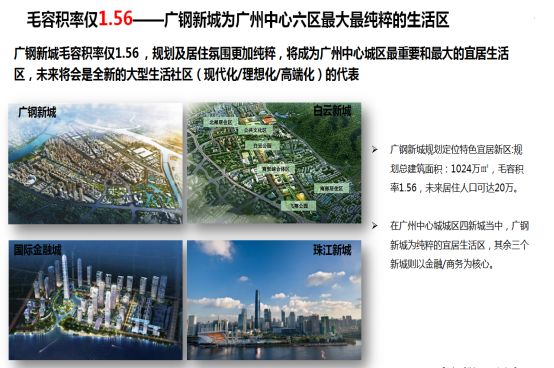 虽然广钢属于西边,但是它的定位“宜居新城”是广州继珠江新城之外的又一高级住宅区。