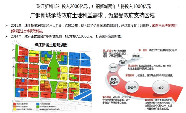 很多人拿广钢新城媲美珠江新城,虽然两个定位不一样,是我们可以来看下政府的投入和规划节奏。