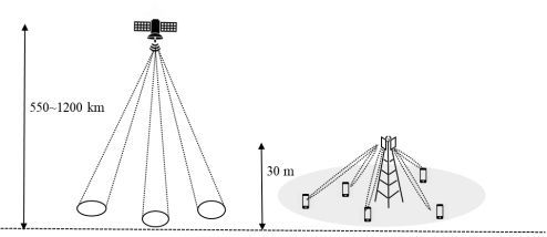 图 3 卫星波束与蜂窝基站覆盖方式对比