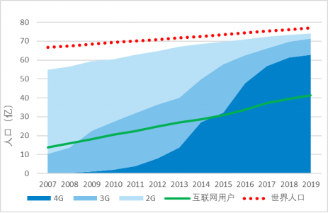 图 6 2007-2019全球蜂窝网络覆盖情况