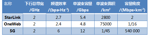 表 2 卫星宽带与5G容量密度比较