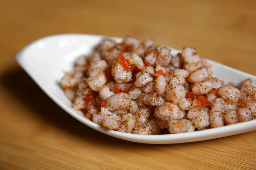 再掐虾尾取虾仁,用蛋清、生粉和盐上浆拌匀,以保持弹嫩口感。